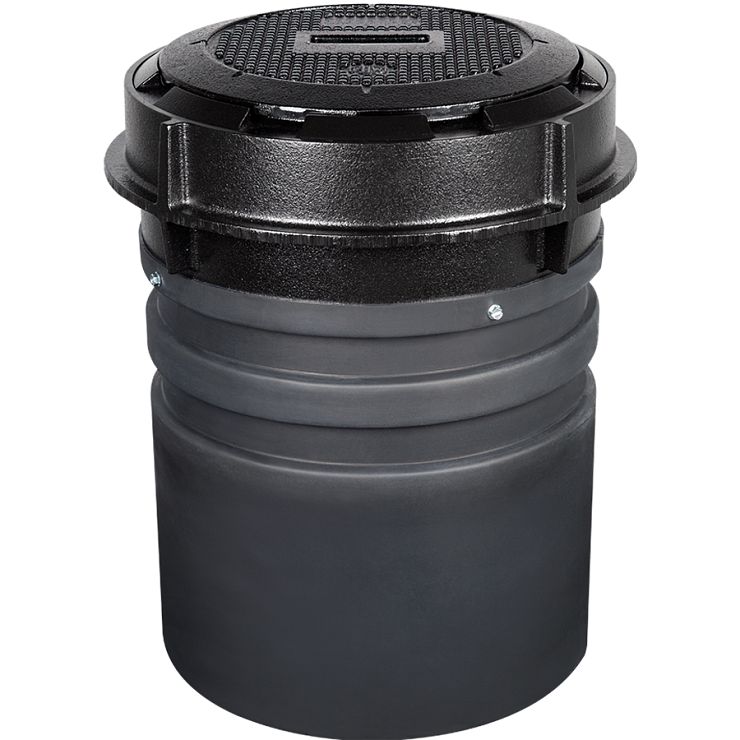 - Description: Defender Series, Grade Level, Single Wall, NPSM Thread, Without Drain, With Black Epoxy-Coated Cast Iron Gasketed Lid